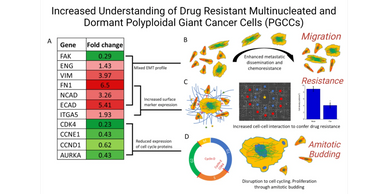 Our recent work has focused largely on PGCCs. PGCCs are large and often multinucleated non-dividing cancer cells that are resistant to chemotherapy and radiation treatment and give rise to daughter cells through budding.